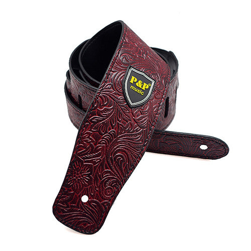Leather Embossed Guitar Strap for Electric, Acoustic & Folk Guitar